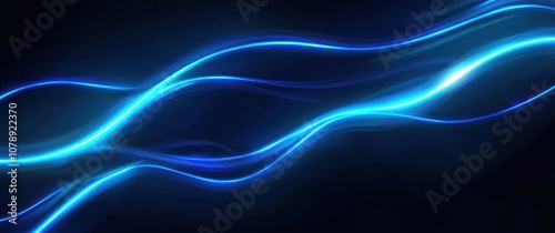 Abstract background with neon glowing wavy lines on a dark blue.