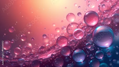Abstract background with pink and blue bubbles. Concept of beauty, cosmetics, and science.