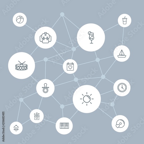 Abstract background with polygonal connected lines and travel, valentine, kids and toys outline icons. Can be use for websites, mobile apps, presentations and other design works