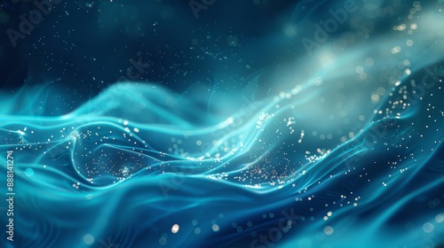 Abstract background with soft blue to turquoise gradients delicate light trails and subtle sparkles