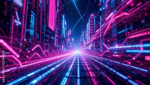 Abstract background with swirling neon circuits and energy sparks for smart city branding and futuristic urban design ads