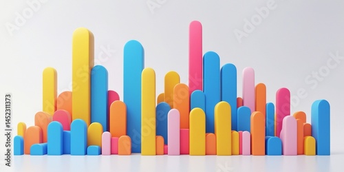 Abstract bar graph in pink yellow and blue tones with modern white background