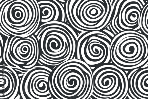 Abstract black and white spiral pattern for modern designs and textured backgrounds.
