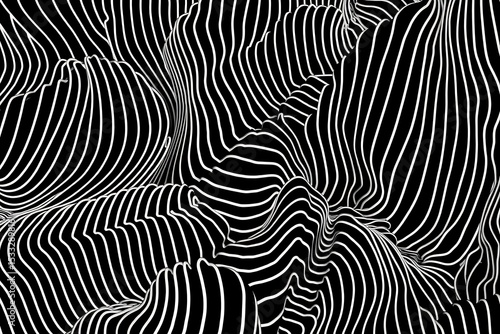 Abstract Black and White Striped Wave Pattern Dynamic 3D Illusion