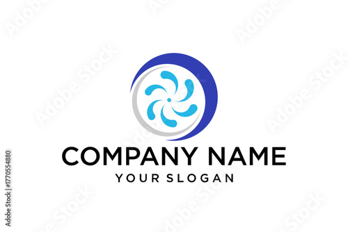 Abstract Blue and Grey Circular Logo Design with Swirling Water or Fan Shape, Vector Graphic for Company Branding