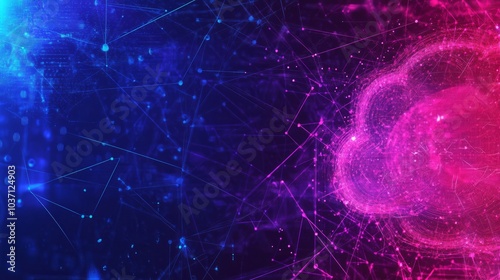 Abstract blue and pink glowing sphere with connected lines in dark background.
