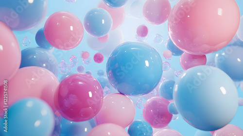 Abstract blue and pink three-dimensional background of many spheres separated from each other and resembling drops 3D illustration 3D rendering