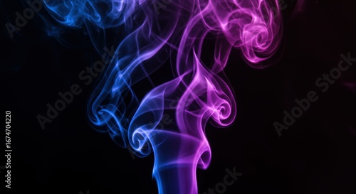 Abstract Blue and Purple Smoke Waves on a Black Background
