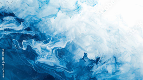 Abstract Blue and White Ink Swirls and Splashes