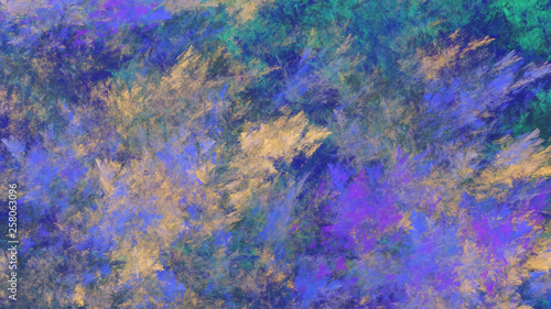 Abstract blue and yellow fantastic clouds. Colorful fractal background. Digital art. 3d rendering.