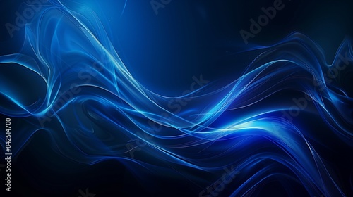 Abstract blue background with blurred wavy lines and glowing elements.