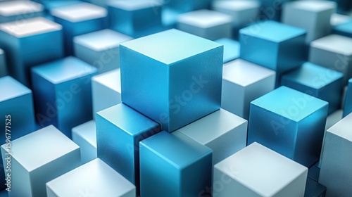 Abstract Blue Cube Structure: A 3D Render of Interlocking Cubes, Representing Data, Technology, or Modern Architecture