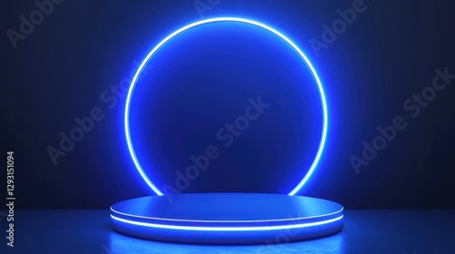 Abstract Blue Neon Circle with Illuminated Platform Presentation