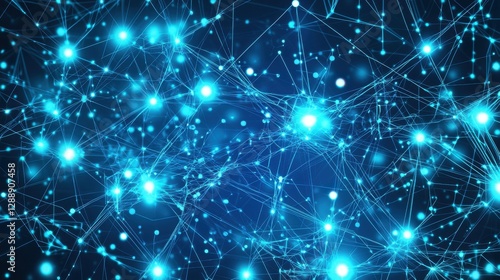 Abstract Blue Network with Bright Dots and Lines on Dark Background
