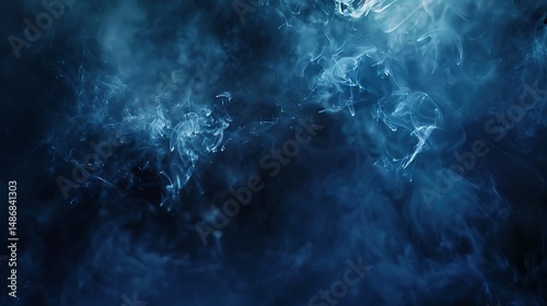 Abstract Blue Smoke Nebula Formation In Deep Space With Glowing Particles