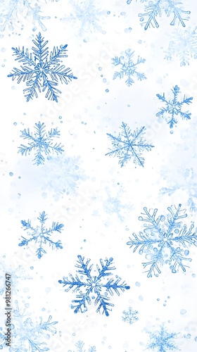 Abstract blue snowflake pattern on a white background, vector illustration, flat design, digital art, simple, minimalistic