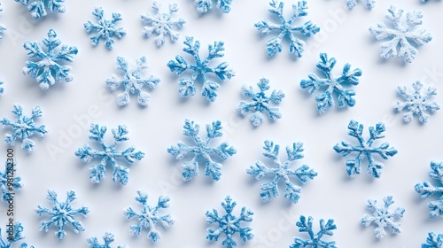 Abstract blue snowflake pattern on a white background, vector illustration, flat design, digital art, simple, minimalistic