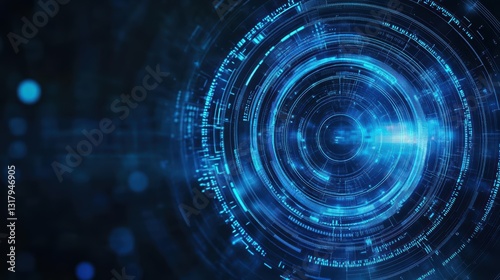 Abstract blue technology background with circular patterns and digital effects, perfect for futuristic design projects.