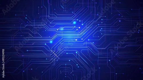 Abstract blue technology background with digital circuit patterns and glowing points, ideal for tech and innovation themes.