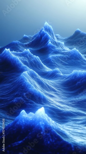 Abstract blue waves with peaks, resembling a sea or ocean.
