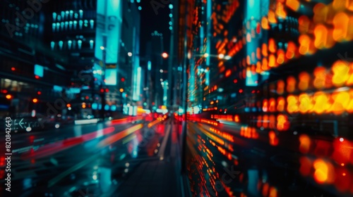 Abstract blurred digital display of rapidly changing stock market prices, e-commerce analytics theme, bright and vibrant colors, dark background for contrast, focus on movement and data flow,