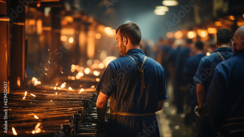 Abstract, blurry, bokeh background, image for the background. People in overalls in production generative ai