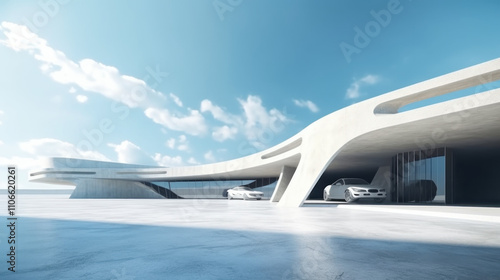 Abstract building with clean cement floors. Futurist architecture created with Generative AI Technology