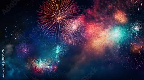 Abstract burst of colorful fireworks against a dark sky , abstract burst, colorful fireworks, dark sky