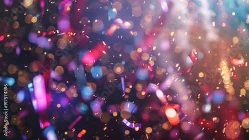 Abstract Celebration with Confetti and Bokeh Lights