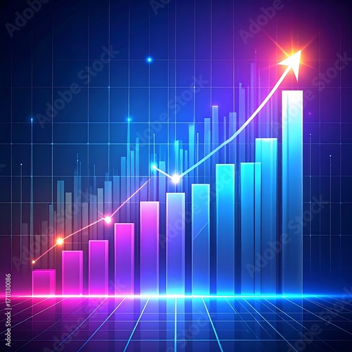 Abstract chart of increasing data points with vibrant neon colors and glowing lines, suggesting growth and progress