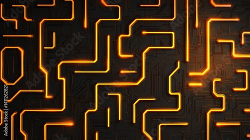 Abstract circuit board pattern with glowing orange lines on a dark background, creating a modern and tech-inspired aesthetic.