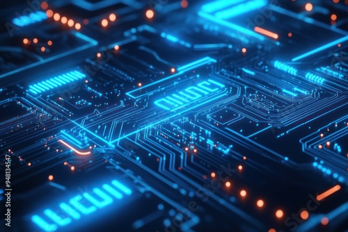 Abstract Circuit Board with Glowing Lines