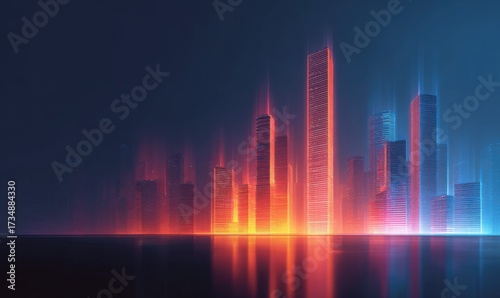 Abstract Cityscape with Vibrant Light Trails and Reflections.