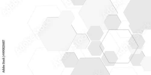 Abstract clean white background featuring a pattern of grey out line hexagons arranged like a honeycomb, Polygonal Honeycomb Elements, Luxury Pattern and Technology-Inspired Design