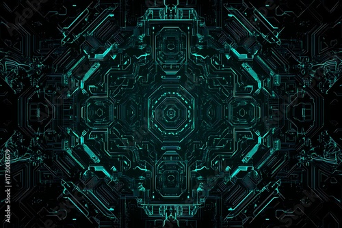Abstract close-up of a glowing blue digital circuit board, showcasing intricate connections and technological design on a black background.