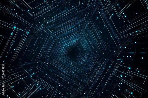 Abstract close-up of a glowing blue digital circuit board, showcasing intricate connections and technological design on a black background.