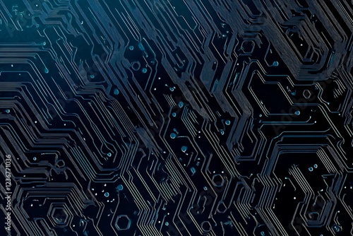 Abstract close-up of a glowing blue digital circuit board, showcasing intricate connections and technological design on a black background.