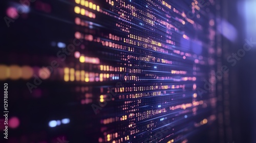 Abstract Coding Concept Depicted by Glowing Lines, Symbols and Gradient Lighting with Atmospheric Background