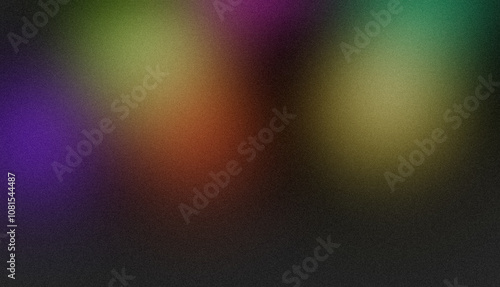 Abstract color spots grainy gradient background. Soft orange blue purple green color noisy gradient texture, vibrant color spots, glowing color flow, bright, shine, noise texture backdrop