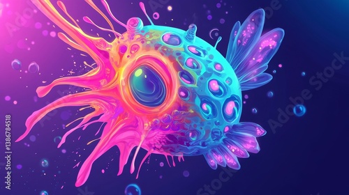 Abstract colorful alien creature with tentacles and eye in a