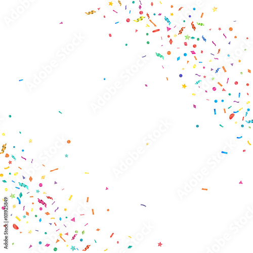 Abstract colorful confetti background. Isolated on white. Vector holiday illustration.