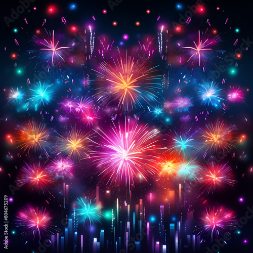 Abstract colorful fireworks on the night sky