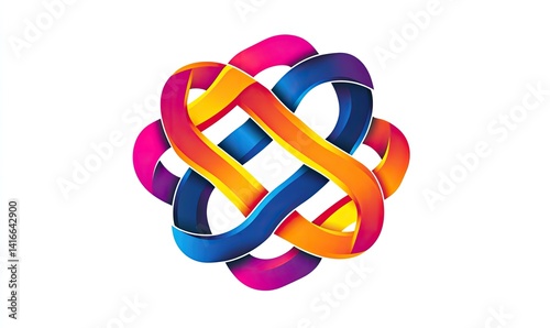 Abstract colorful intertwined design. Vibrant 3D shapes create a complex, symmetrical pattern