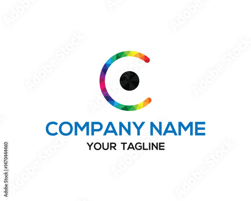 Abstract colorful letter C logo design vector template for company identity brand with modern geometric style and black circle eye
