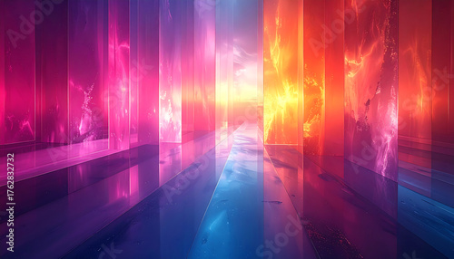 Abstract colorful light corridor digital artwork reflective surface creative visualization