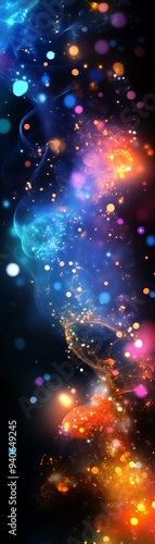 Abstract colorful nebula with glowing lights in dark space background.