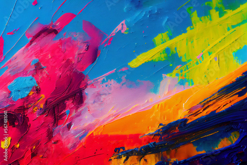 Abstract colorful oil painting on canvas. Oil paint texture with brush and palette knife strokes. Modern art. Created with Generative AI technology