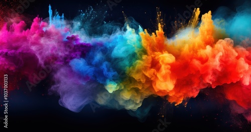 Abstract Colorful Swirling Ink Explosions on Black Background