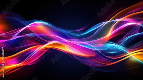 Abstract colorful waves, dynamic energy, dark background, design element