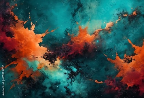 Abstract cosmic clouds, vibrant teal and orange nebul